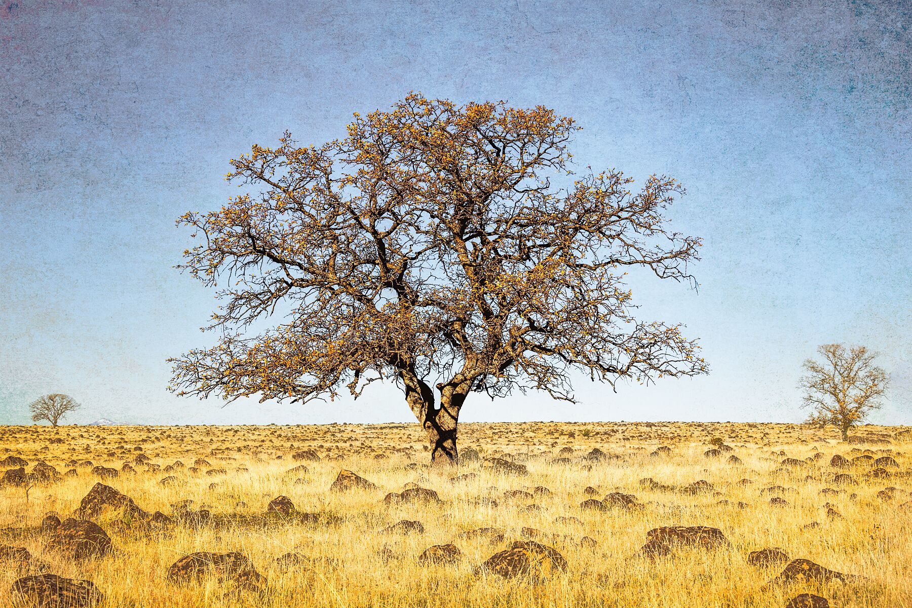 Blue Oak Five captures the quiet elegance of a solitary oak reimagined in a field of light and texture. Removed from its natural surroundings, the tree becomes a sculptural presence—grounded, graceful, and timeless.
