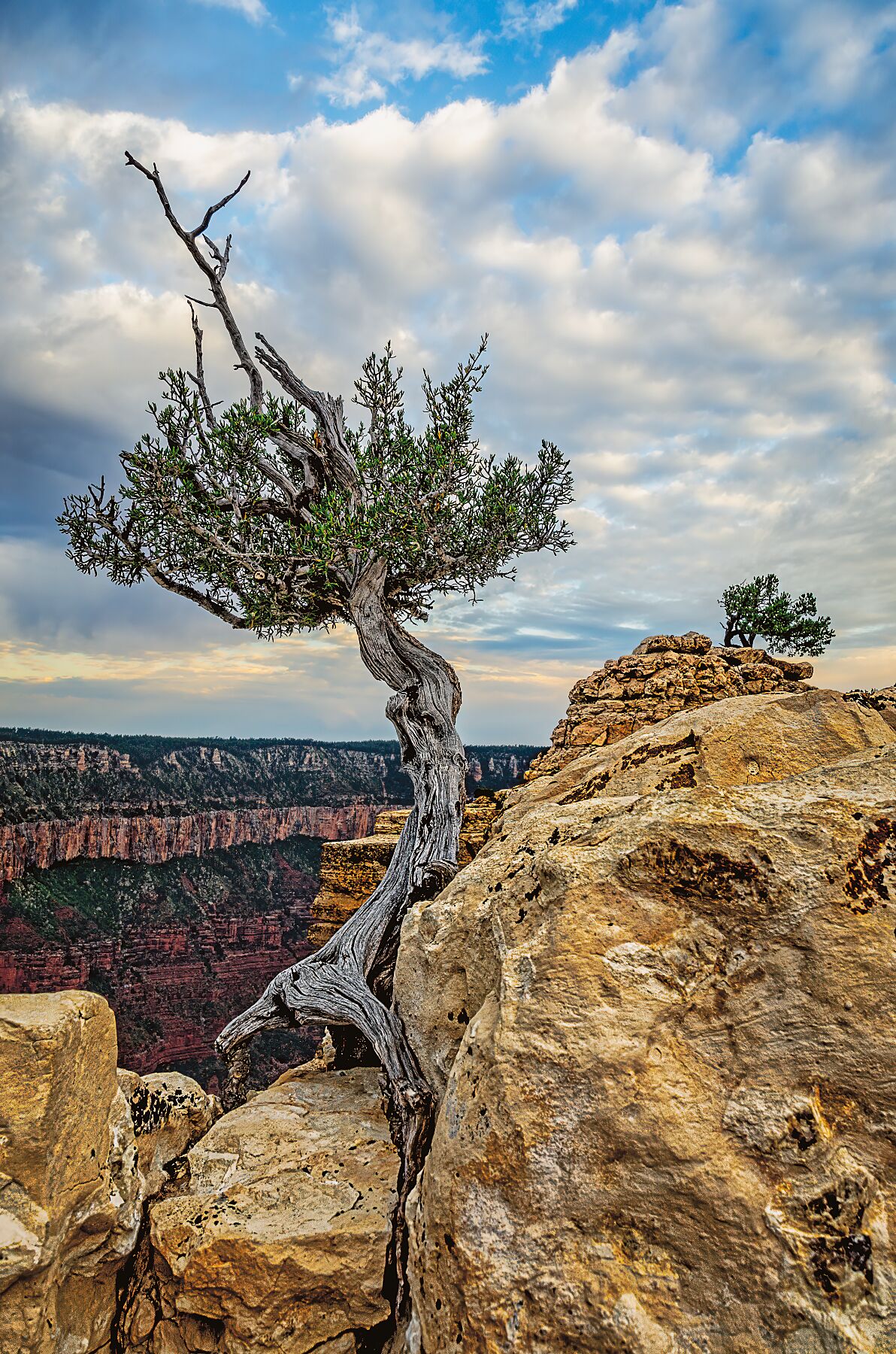 Clinging to the canyon’s edge, this solitary juniper has weathered centuries of wind and sun, its roots anchored deep in stone. Twisted and resilient, it rises above the vast chasm below, a witness to each dawn that spills across the cliffs of the Grand Canyon. Deirdre honors trees that hold the line between fragility and strength. In this image, the Pinyon Pine is not hidden in a forest but boldly exposed, thriving where few others could. Bright Angel Point Sunrise is a tribute to survival, grace, and the quiet courage it takes to hold one’s ground against the elements.