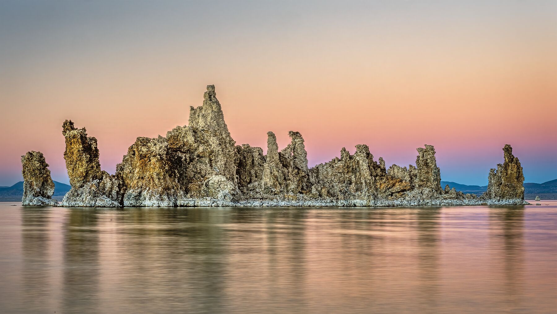 When the day bows out at Mono Lake, the stage belongs to the tufas—those otherworldly limestone towers rising from the water’s edge. Bathed in the soft glow of a fading sun, their jagged silhouettes seem to float on molten glass, while the sky drapes itself in a perfect gradient of rose and gold. Deirdre has revealed Mono Lake at its most poetic—where stillness becomes spectacle.